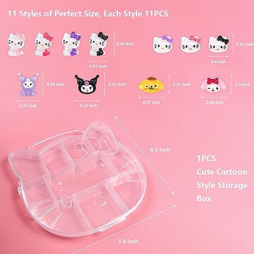- ?Rich Styles?110 pcs nail charms,11 styles of kawaii charms,1 PCS Nail Art Sticker and 1 beautiful box.