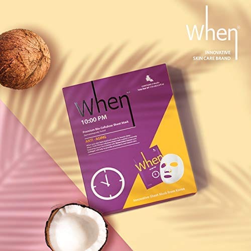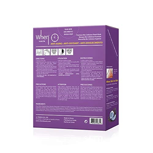 Anti-Aging Bio-Cellulose Facial Sheet Mask – When Beauty 10PM Face Premium Korean Skincare Moisturizing Texture Improvement Fine Lines Wrinkles Reduce For All Skin Types (12 pcs set)