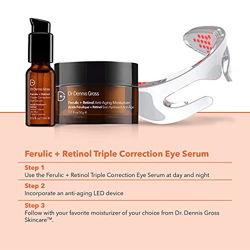 Dr Dennis Gross Ferulic + Retinol Triple Correction Eye Serum: for Wrinkles, Loss of Elasticity, and Rough Texture, 0.5 fl oz
