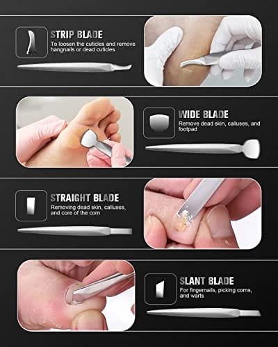 • Super Sharp Pedicure Blades: - These foot knives and toenail clippers set is made of 420j2 surgical grade stainless steel, known as one of the most durable blades to resist rust