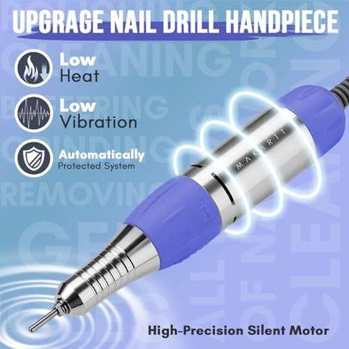 - Upgrade Motor Nail Filer Electric: With high precision & high torque, Makartt E Filer for nails adopt Japanese CE Certificate bearings, truly achieving low noise low vibration and low heat. Design with ventilation for reducing the handpiece temperature. Optional speed (0-30000rmp)which is easy to adjust and shows speed signal on the motor.
