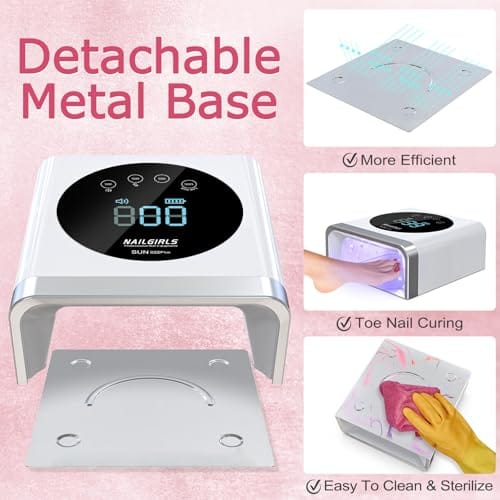 - Smart Timer Settings & LCD Display: NAILGIRLS X22 Plus gel nail UV light features 4 adjustable timer settings (30s/60s/99s/120s) to suit different gel types, including a 120s low heat mode for gentle curing and reduced discomfort. The built-in infrared sensor automatically activates the lamp when you place your hand or foot inside and turns it off when removed. An easy-to-read LCD display lets you monitor the curing time and battery capacity with ease, providing a seamless and efficient nail care experience