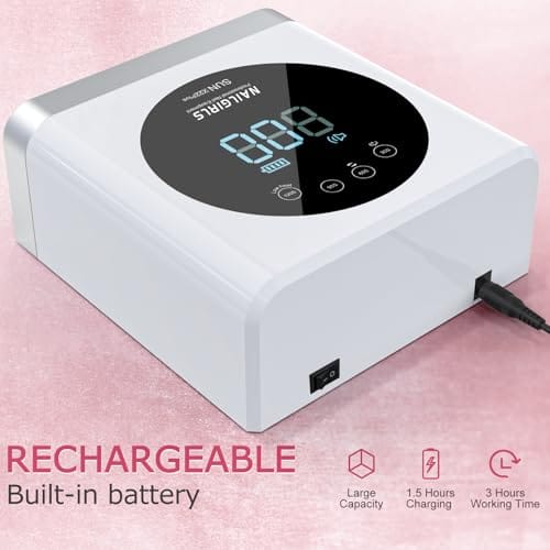 - Rechargeable & Cordless: Equipped with a high-capacity built-in battery, nail polish dryer delivers up to 3 hour working time gel curing sessions on a full 1.5-hour charge. Its cordless design provides ultimate flexibility, making it ideal for home, salon, or outdoor use--no need to stay plugged in. Experience the freedom to cure gels anytime, anywhere