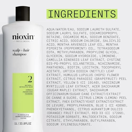 - Prepare hair and scalp for a complete hair thickening treatment with Nioxin's three part System 2 Cleanser for Natural Hair with Progressed Thinning