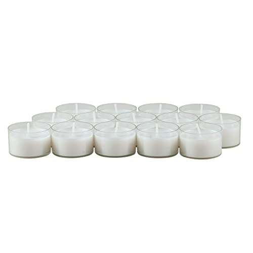 Stonebriar 96 Count White Unscented Smokeless Long Burning Clear Cup Tea Light Candles with 6 to 7 Hour Burn Time