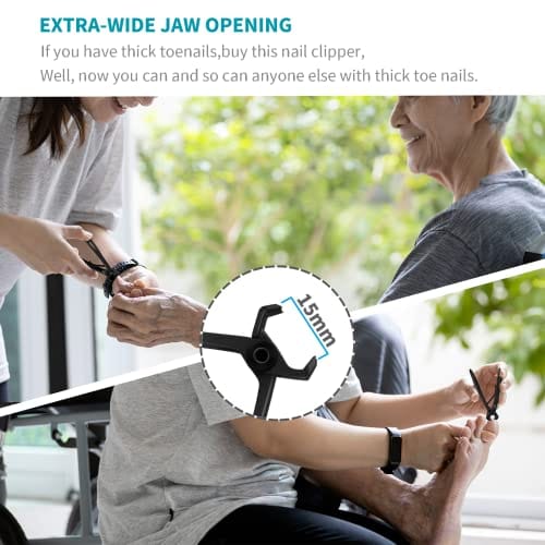 - Ultra WIDE JAW OPENING for thick nails up to 15mm.This is the maximum jaw width for top-down style nail clippers. Handle is reinforced for extra strength when pressing down on thick nails. Specialized design for good grip and non-slip action.
