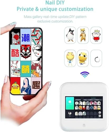 ZMQHYFD Nail Art Stickers 3D Nail Printer, DIY/App/WiFi/USB Digital Intelligent Nail Art Printer for Kid/Nail Studio/Manicurist/Nail Lovers